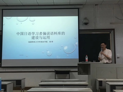 李广伟博士介绍了语料库的总体建设规划与思路,并从语料采集、语料加工、语料标注、平行对齐四个步骤详细介绍了语料库的制作方法。同时,李博士以《诗经》的理雅各译本、詹宁斯译本等多个译本为例,从词汇与句子两个层面展示了语料库于翻译学中的具体应用。林璋教授介绍的是学习者语料库——中国日语学习者偏误语料库的建设与运用。该语料库大规模收录中国日语学习者的作文作为语料,由日语母语者对学习者作文进行批改后再加注语法标签。这个学习者偏误语料库不仅可以使教师与学习者了解到不同阶段学习者的偏误倾向,对日语教学研究与二语习得研究也大有裨益。