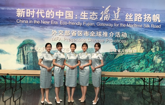 2019年7月5日,“新时代的中国:生态福建,丝路扬帆”福建省全球推介会在外交部蓝厅举办,国务委员兼外交部部长王毅出席并致辞,福建省委书记于伟国、省长唐登杰在会上推介。推介活动吸引了来自140多个国家的驻华使节、国际组织代表,及部分世界500强企业、知名跨国企业负责人、台港澳侨代表和中外媒体记者等约500余人。