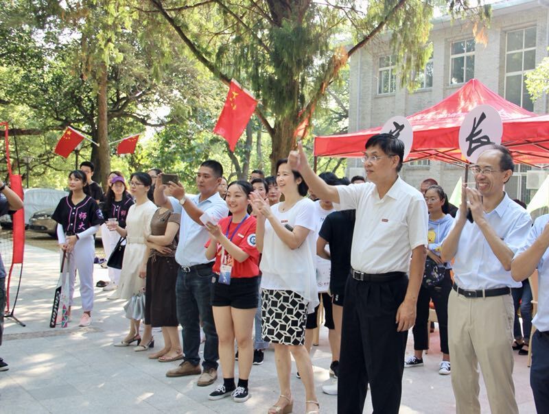 上午,校党委李宝银书记与涂荣副校长和学校各职能部门负责人在学院党政班子的陪同下到陈明金教学楼巡查迎新工作,并与大家合影留念。