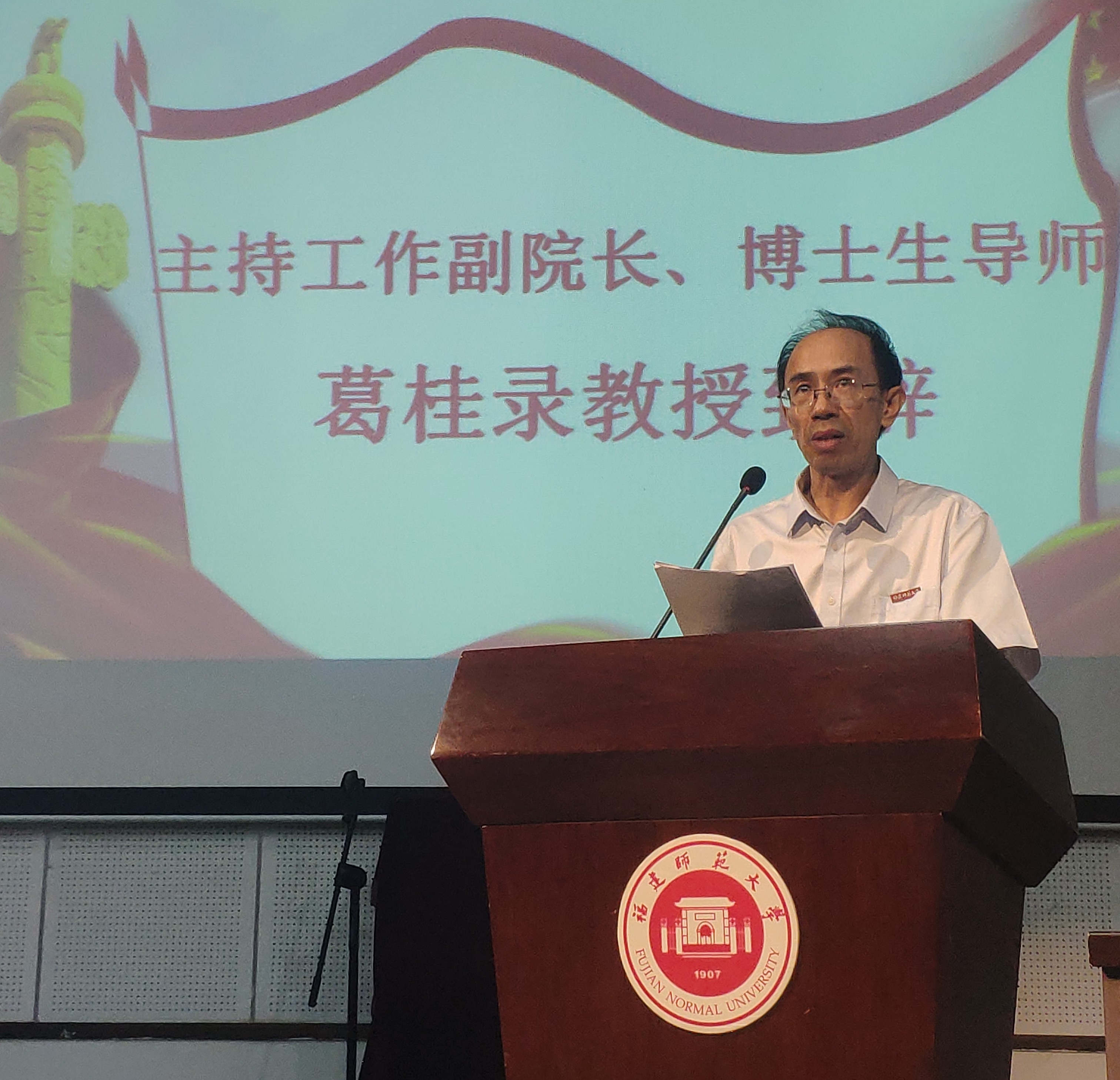 大会第二场是我院2019级本科生开学典礼。主持工作副院长、博士生导师葛桂录教授发表了题为《大学乃精神成人之所》的致辞。葛院长从师生的辩证关系和自身经历谈起,就“读书”与“成人”同大家交流大学阶段的成长心得,提醒大家思考四个问题——“为何读书”、“如何读书”、“大学时光如何度过”和“如何看待过去、现在与将来”。