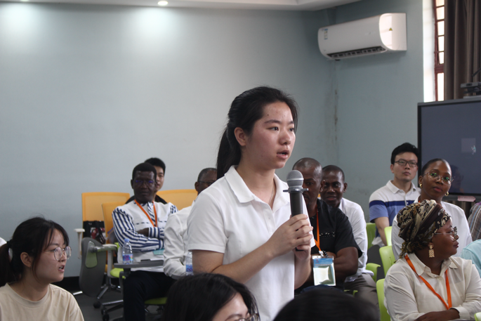 我院师生也积极提问,不仅讨论了非洲的教育人才培养模式,更进一步探索文化交流的新可能。同时,外院师生们表达了对非洲优美风光与特色多元文化的喜爱,以及加强中非文明互鉴的强烈意愿。大家畅所欲言,从教育合作聊到文化互鉴,现场气氛轻松活跃。