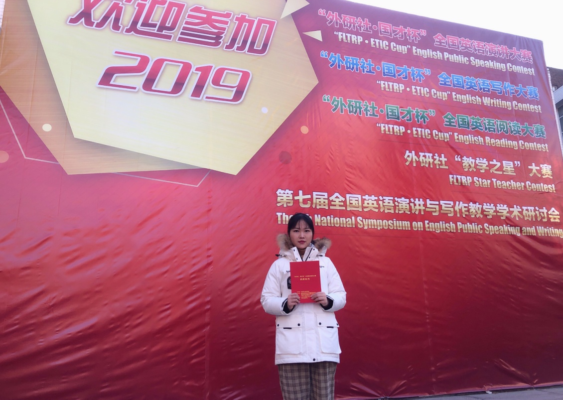 12月11日,2019“外研社·国才杯”全国英语写作大赛总决赛在北京拉开帷幕,来自31个省、市、自治区及澳门特别行政区的90位精英,经过校级初赛,省级复赛,从共近25万参赛者中脱颖而出,获得全国总决赛的席位。我院2017级英语(经贸方向)的余点同学在李光泽老师的指导下发挥出色,最终荣获英语写作大赛的一等奖。