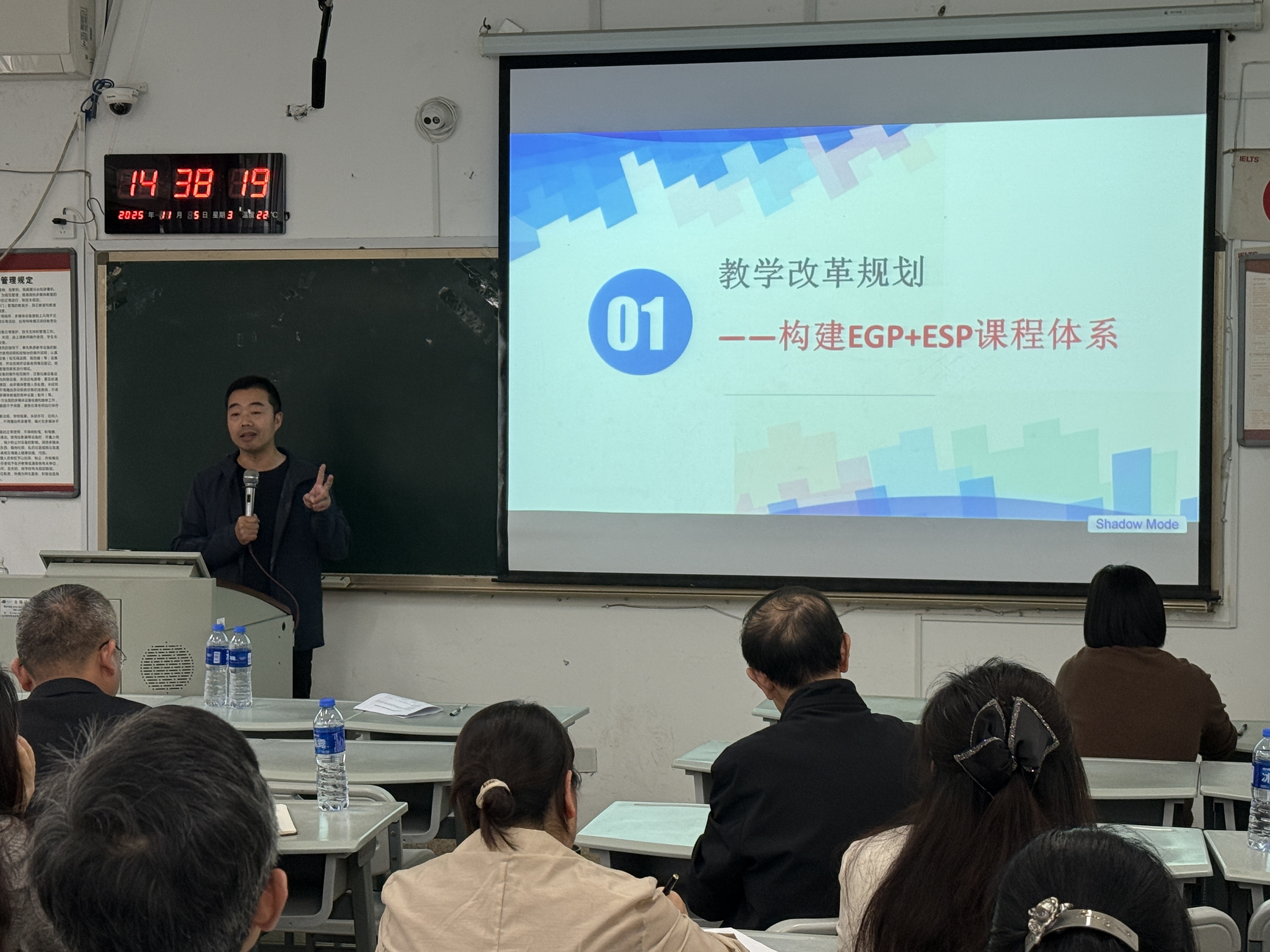 研讨会首先由本科公共外语系主任邱永忠作专题发言。他立足教研部发展实际,系统阐述了近中期教学改革规划与“十五五”重点建设项目,针对当前教学实践中存在的痛点与难点问题进行剖析,并提出了初步的解决思路与实施方向。