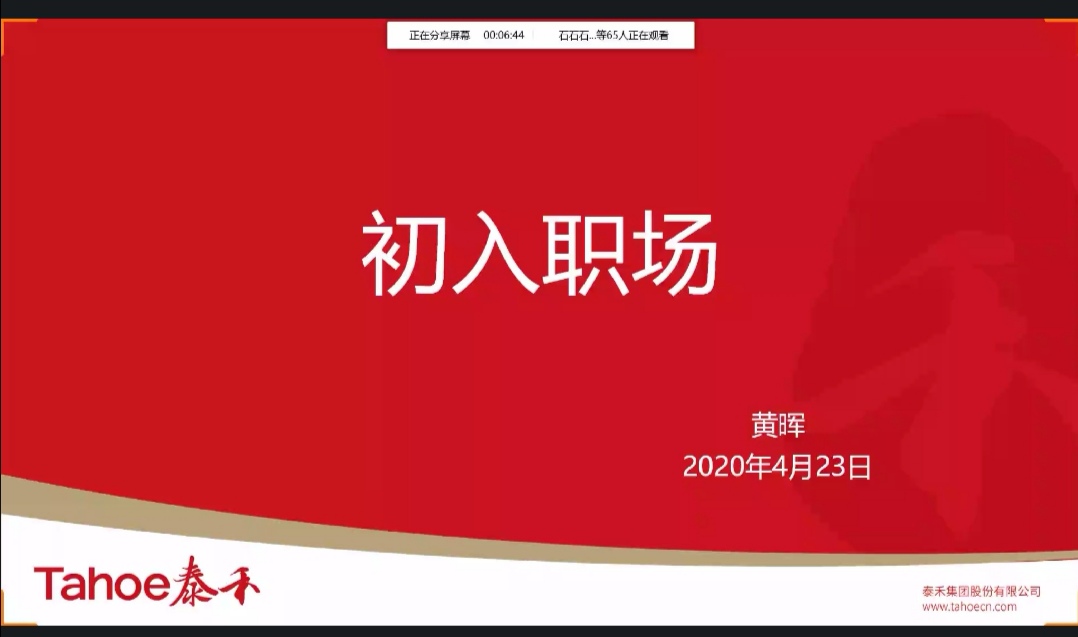为更好帮助毕业生走好职业生涯第一步,树立职业生涯规划创新理念、提高就业技能与实践能力,我院力邀行业高管为毕业生开展系列职场讲座。2020年4月23日下午3点,商务英语系邀请泰禾酒店集团人力资源总监黄晖女士开展题为“初入职场”线上职场讲座,讲座由商务英语系主任刘茵老师主持,近百名毕业生在线聆听,并积极参与互动。