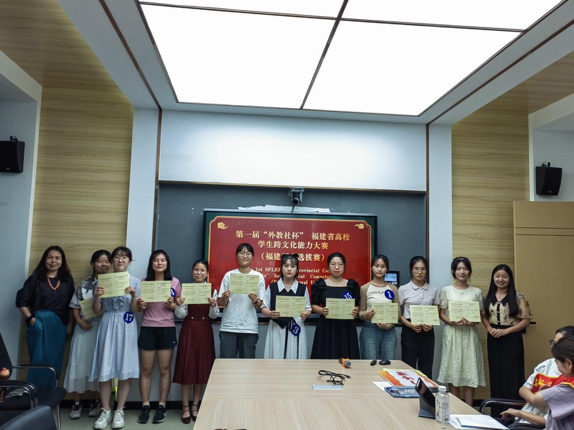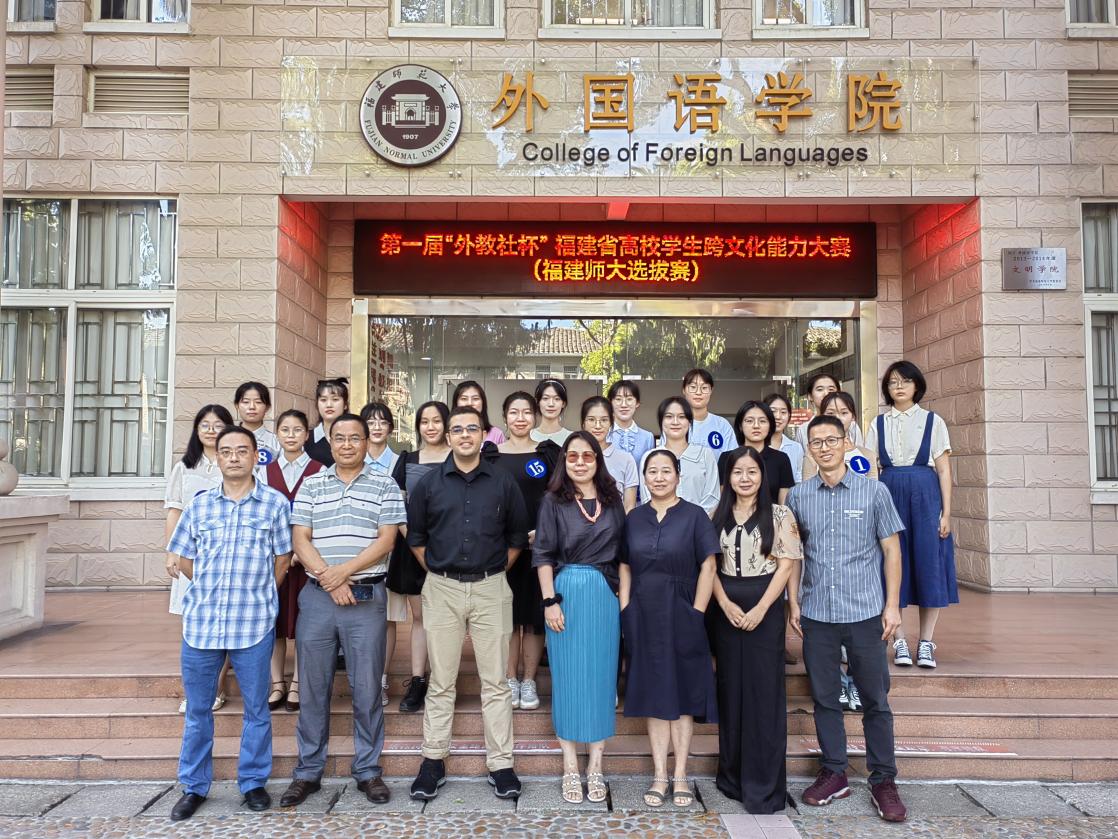9月14日下午,我院成功举办第一届“外教社杯”福建省高校学生跨文化能力大赛(福建师大选拔赛)。赛事由学院刘宜平副教授、吴琼副教授、郑丽琦副教授、李新庭副教授、张爱珍副教授、李恩福老师及提问嘉宾美国外教RON担任评委。