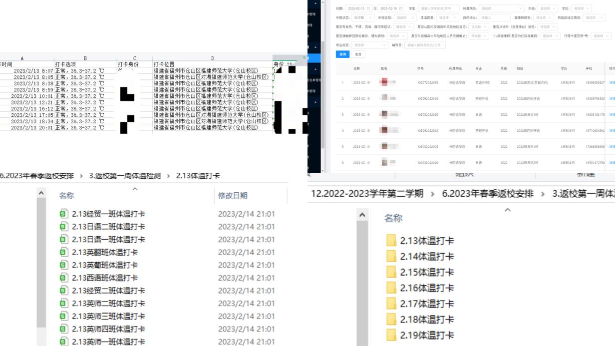 为确保全面有序做好2023年春季开学工作,严格贯彻落实学校关于新学期开学前后工作的相关指示,学院对学生返校前健康安全工作、返校后疫情防控工作以及扎实做好学生管理等工作进行了梳理和总结,为新学期学生返校开学做了充分准备,全院师生以积极热忱的心态和昂扬向上的精神风貌共同揭开新的篇章。