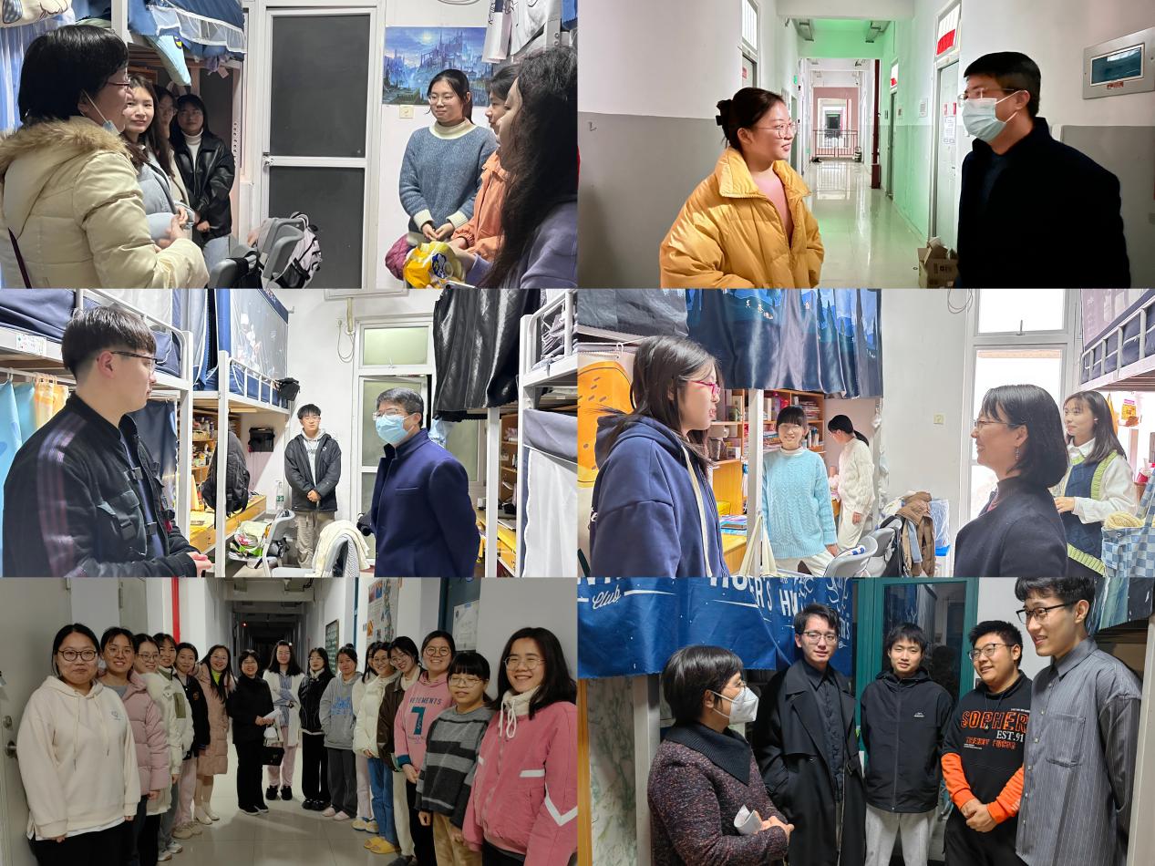 走访宿舍,关怀到寝递温情。为深入了解返校学生实际需求,确保新学期良好的学习生活秩序,学院领导、辅导员、研究生导师、班主任深入学生宿舍,看望慰问返校学生。在走访过程中,与学生进行亲切交流,详细询问同学们的专业学习、假期生活、兴趣爱好等情况,主动倾听了同学们的心声和需求。同时也提醒同学们要尽快从春节假期的状态中调整过来,以饱满的热情投入到新学期的学习生活中,不断的丰富大学生活,开启新学期新征程。