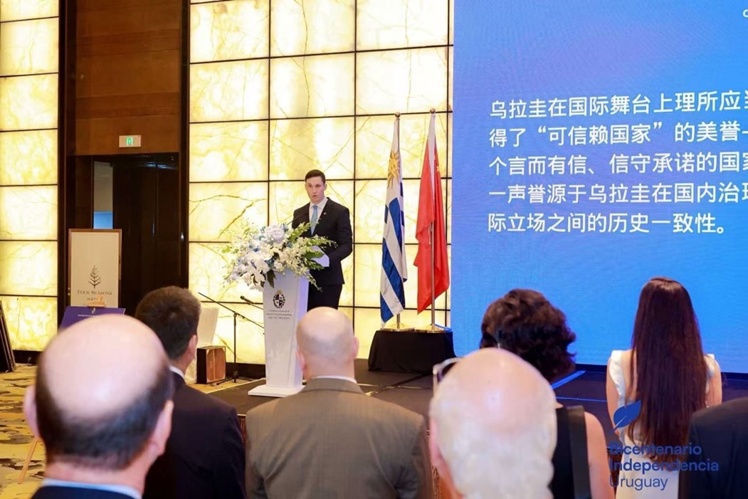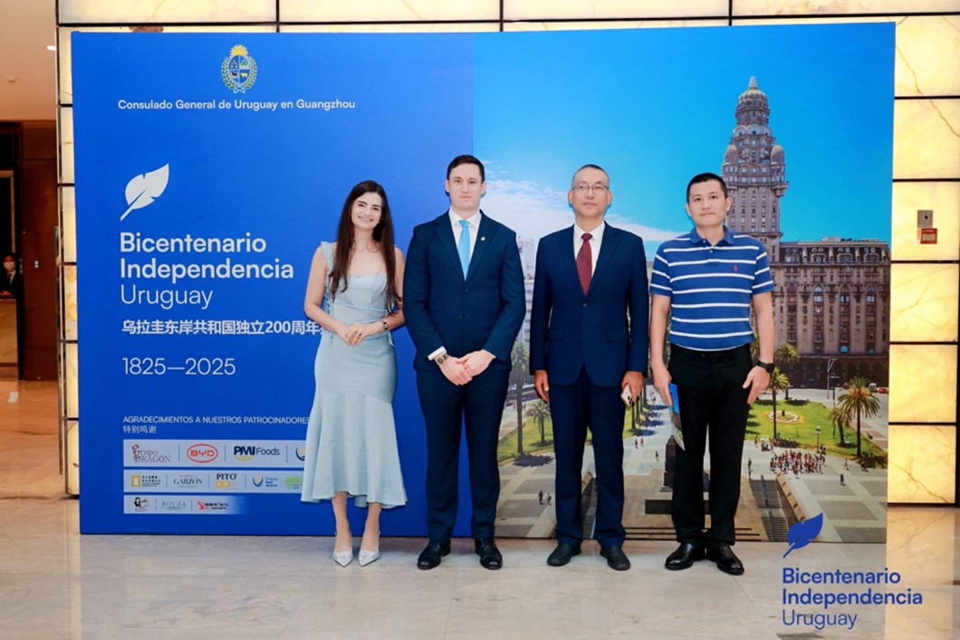 8月25日,受乌拉圭驻广州总领事法昆多.费尔南德斯先生邀请,我院党委书记林鲁文、欧语部副主任周强出席了乌拉圭驻广州总领事馆举办的乌拉圭东岸共和国独立200周年庆祝活动。活动交流中,法昆多总领事表示对今年六月在福建师范大学外国语学院的参访和外国语学院师生精心筹备的乌拉圭文化节活动印象深刻。林鲁文书记在感谢总领事的邀请后表示,希望与领事馆开展更多领域的交流活动,推动两国文化和青年的互动交流。近年来,福建师范大学外国语学院始终坚持高水平对外交流合作,作为学校国际化建设的重要组成部分,全力推进开放办学发展策略,切实服务教育强国战略。