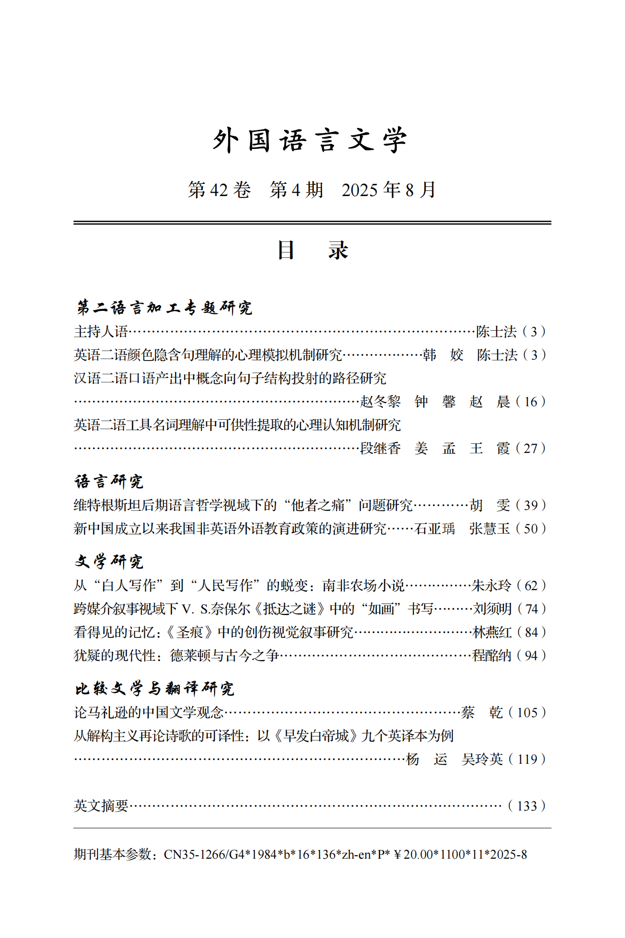 | 《外国语言文学》(双月刊)2025年第4期论文目录及摘要 |