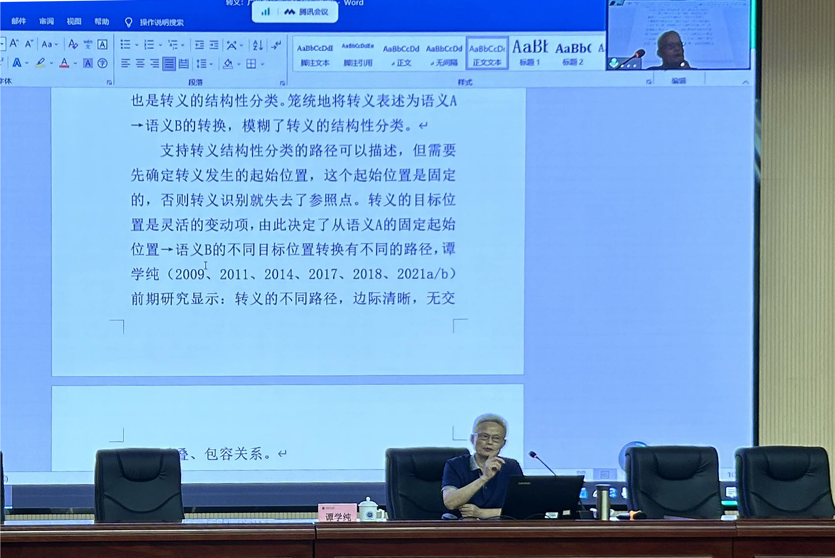 2023年6月2日上午,福建师范大学文学院谭学纯教授应邀为外国语学院师生开设“基于广义修辞观的‘转义’ 再阐释”专题讲座。此次讲座由林佩璇教授主持,外国语学院师生共100余人参加。