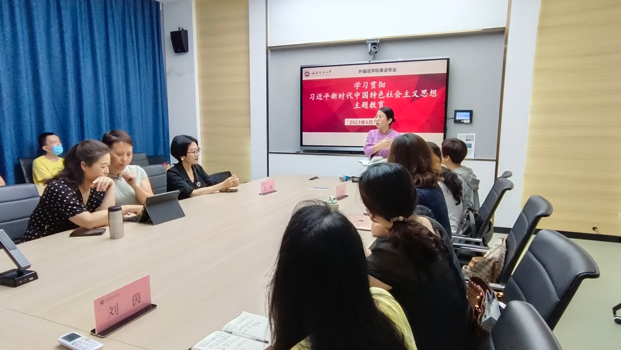 为深入开展学习贯彻习近平新时代中国特色社会主义思想主题教育, 加强学院学风教风建设, 切实提升英语专业本科课程教学质量,英语教育系联合商务英语系于2023年6月7日下午,在智慧教师工作坊开展了课程思政示范课、专业教学观摩课、主题讨论等教学教研系列活动。