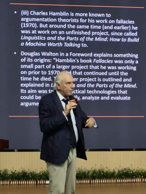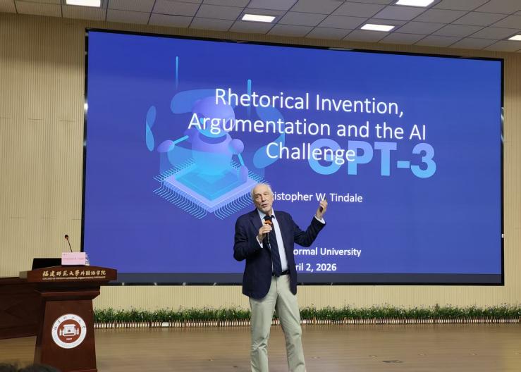 2026年4月2日下午,应福建师范大学外国语学院邀请,加拿大温莎大学(The University of Windsor)杰出终身教授、国际知名修辞与论辩研究理论家克里斯托弗·廷德尔(Christopher W. Tindale)教授,在崇信报告厅为我院师生作了专题学术讲座,题目为“修辞发明、论辩与人工智能的挑战”(Rhetorical Invention, Argumentation, and the AI Challenge)。本次讲座由我院修辞与论辩研究中心汪建峰副教授主持。