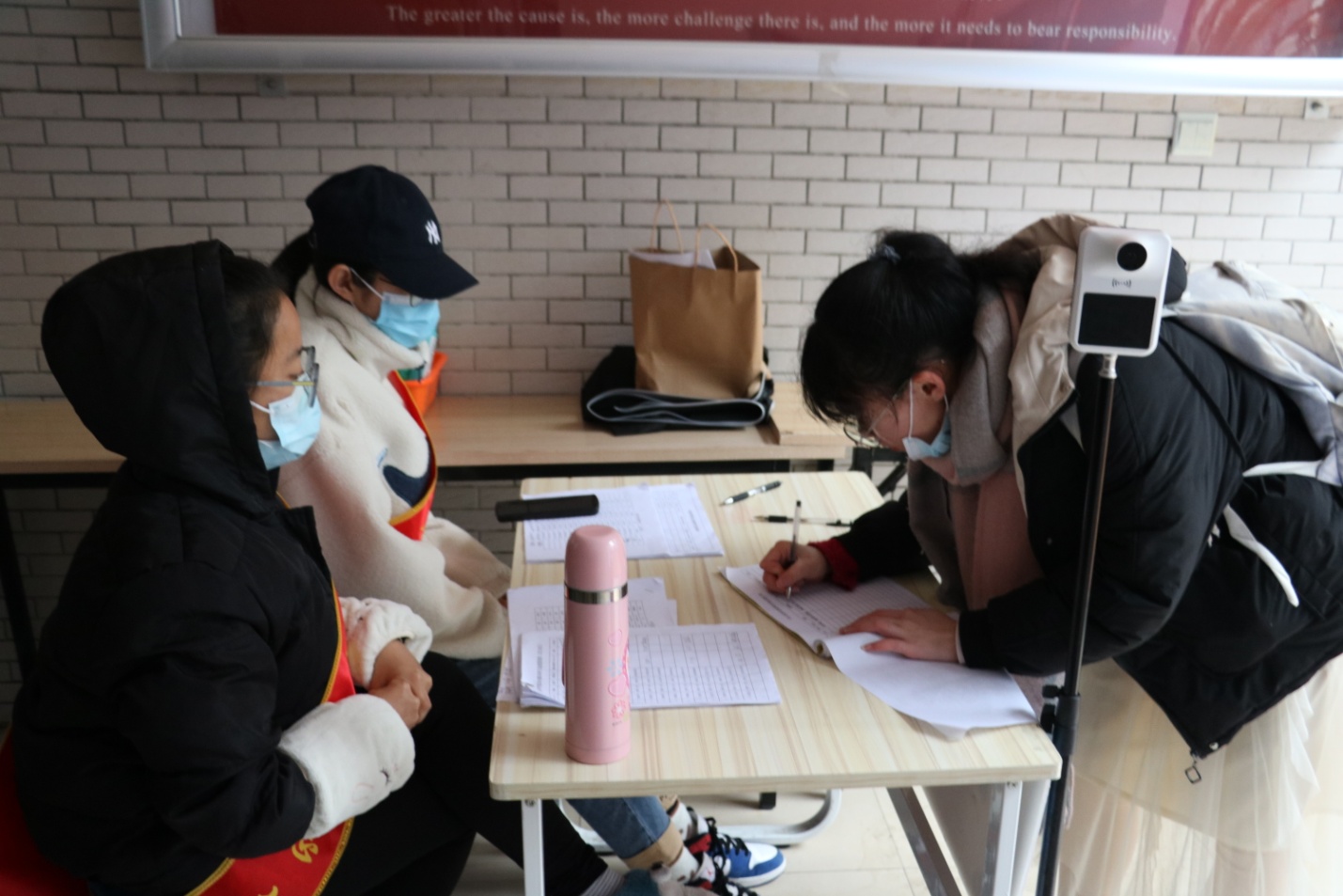 图4:同学们入楼体温检测、签到