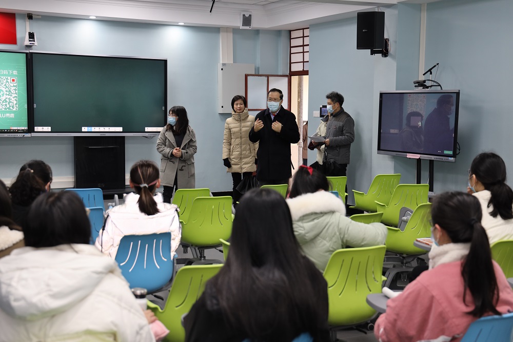 新学期开学第一天,正值福州冬春最冷的一天,教学楼恢复了往日的生机和活力,师生员工精神抖擞,干劲十足。校领导王长平、涂荣带领学校有关职能部门负责人及工作人员到我院实地看望检查新学期教师上课、学生到课情况,提醒学生多穿衣服,注意防寒保暖,同时对常态化疫情防控形势下的课堂教学、教学设施运行、教学条件保障等进行了全面检查和了解。期间,王校长深入课堂,与我院学生进行互动交流,鼓励学生勤奋学习,以饱满的精神状态迎接新学期的到来,