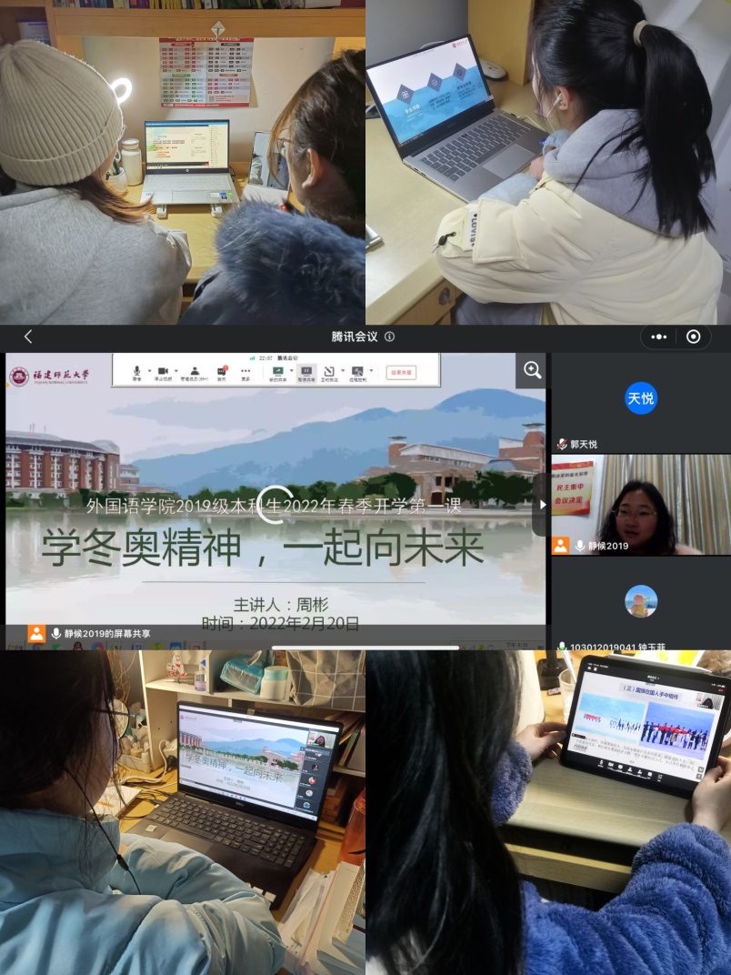 为了营造良好的开端,激发学生的学习热情,在2月20日冬奥会闭幕之际,各年级辅导员融入冬奥话题,精心组织了“开学第一课”线上主题集中晚点。着重通过弘扬奥运精神引导学生养成良好学风,倡导学生积极参与新学期学院开展的十项学风建设活动,并围绕疫情防控、学风、诚信、安全、网络文明和生命健康教育等方面。