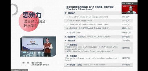 我院林明金教授受邀作题为“语言与育人融合的大学英语课程与教学设计”的主旨发言。他以福建师范大学为例,分享了如何在教学组织的过程中培养“思辨力”、增强团队“凝聚力”、发掘自我“驱动力”和提升教学“执行力”,从而在课程思政教学上实现“四合”,即线上与线下的结合、语言与育人的融合、课内与课外的整合、目标与考核的契合。通过分享本校课程思政教学案例与课程建设经验,他指出,大学英语课程思政应实现知识传授、能力培养和价值塑造的统一。