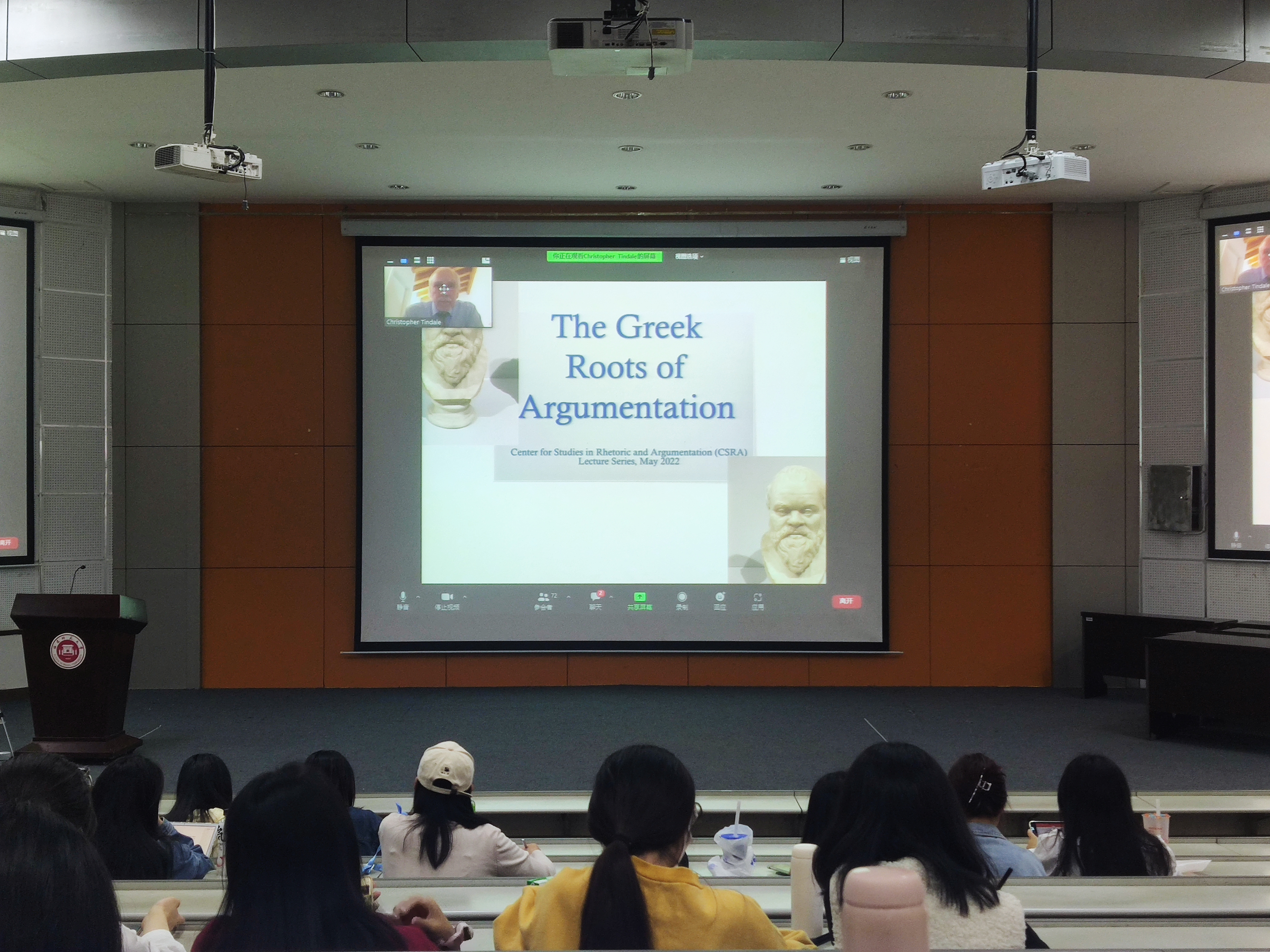 5月4日下午,国际修辞论辩研究代表性学者、加拿大温莎大学哲学系教授克里斯托弗·廷德尔(Christopher W. Tindale)教授应邀为学院师生作了题为《西方论辩研究的古希腊源头》的在线学术讲座。该讲座系外国语学院“修辞与论辩”海外名家论坛第1期“修辞对论辩研究的重要意义”系列讲座的第一讲,由修辞与论辩研究中心主办,汪建峰副教授主持了本次讲座。来自外国语学院及国内外高校的师生350多人现场或线上聆听了讲座。