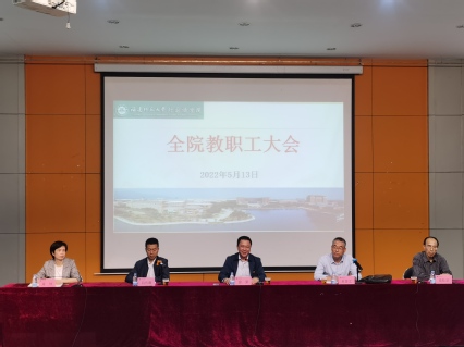 2022年5月13日,我院召开全体教职工大会,校党委组织部副部长阮传瞰同志主持并宣读学校关于林鲁文同志任我院党委书记的决定,校党委副书记涂荣同志出席会议并代表校党委讲话。