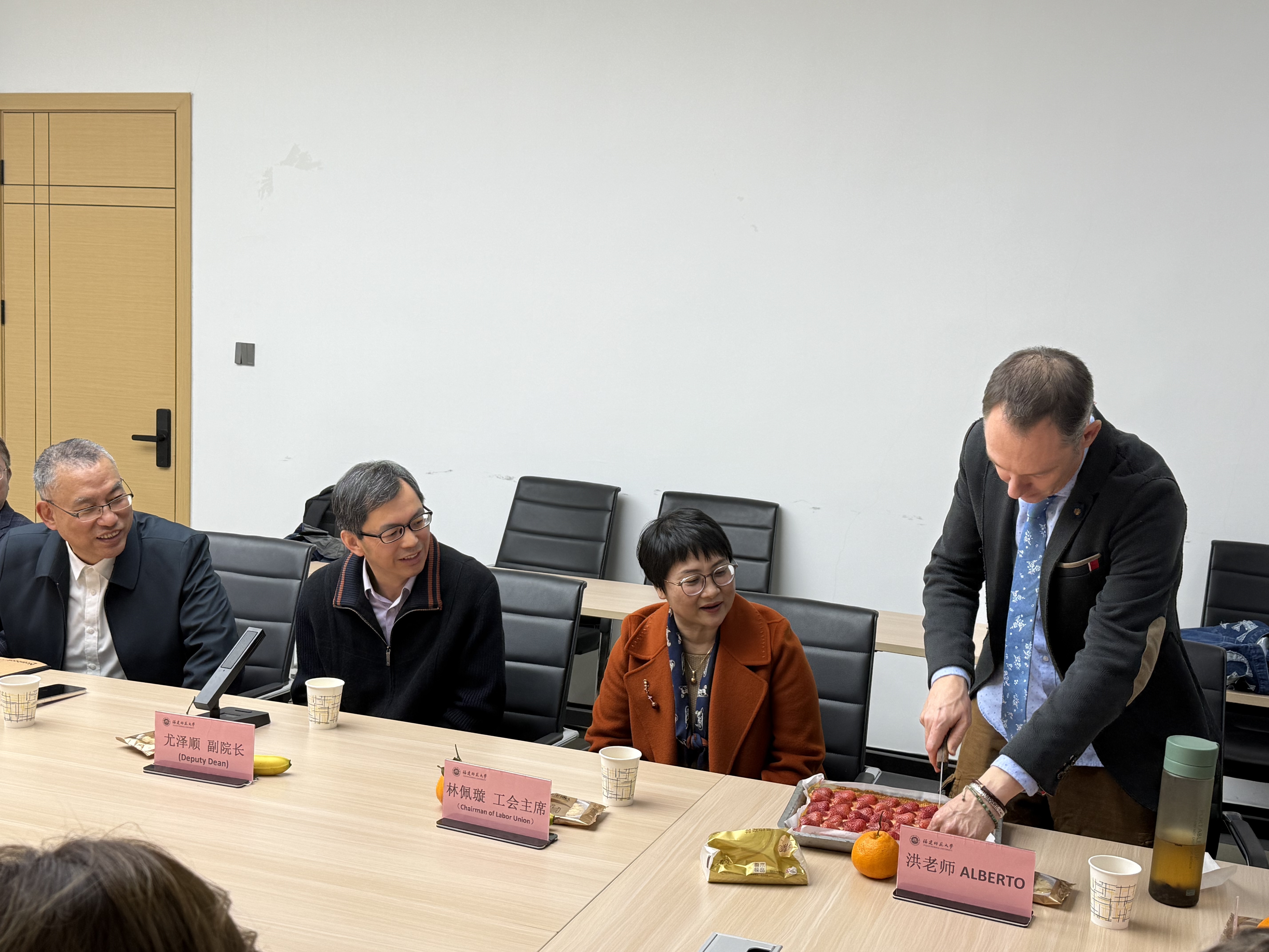 会后,西班牙语外教Alberto还特意把带来的自制草莓糕点与大家分享。