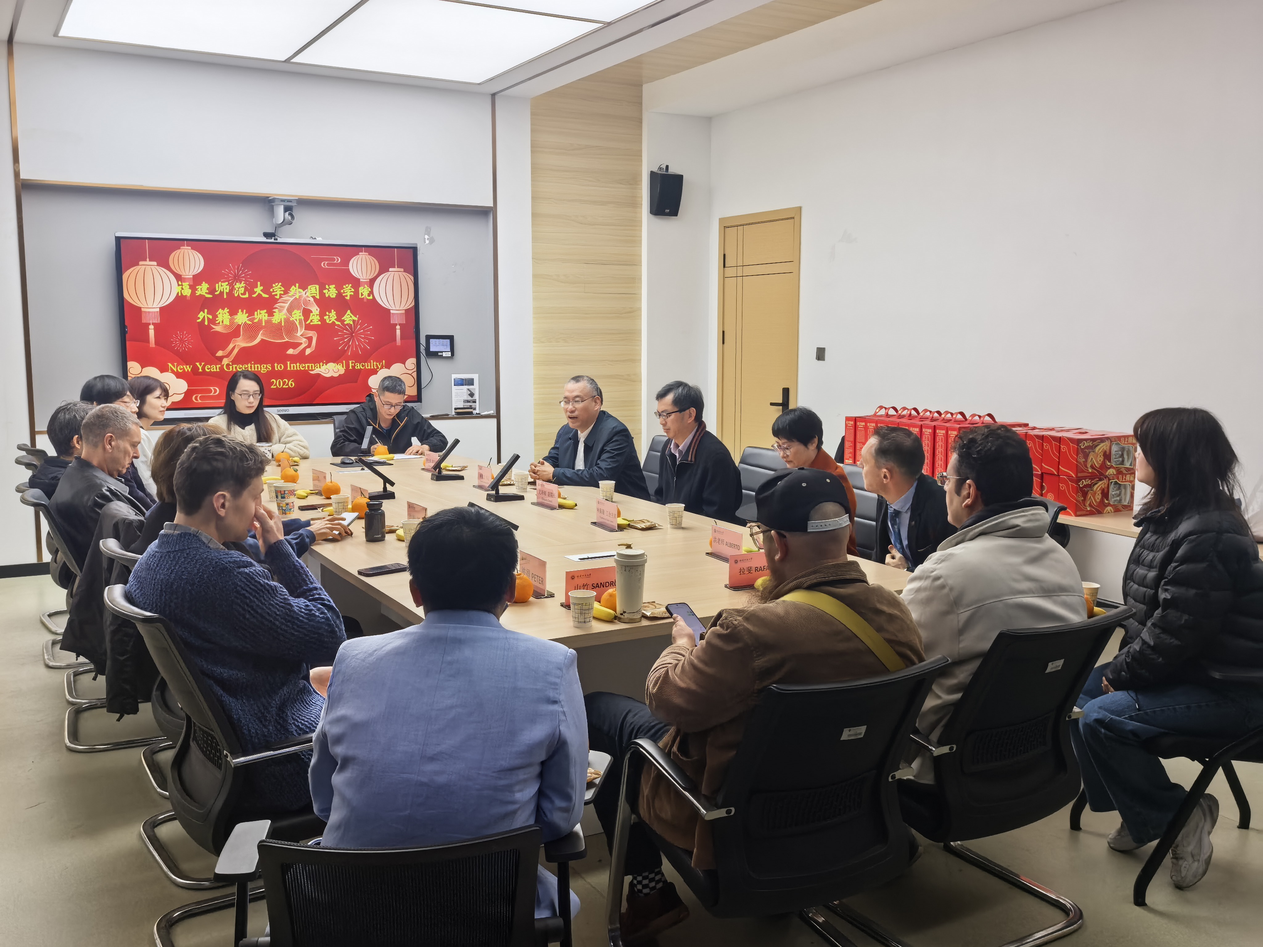 会上,林鲁文书记代表学院对外籍教师致以新春的祝福,感谢他们在过去一年里对学院工作的支持和奉献。外籍教师积极分享育人经验,交流教学过程中的心得与困惑,积极建言献策,期盼在新的学期携手并肩,共同收获更加丰硕的教学成果。