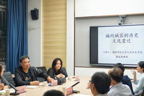 在文化交流研讨环节,戴显群教授以“三坊七巷历史文化的变迁”为主题,梳理了三坊七巷从唐宋坊巷格局到近现代发展的历史脉络,解读了其蕴含的文化价值,为现场观众呈现了一幅生动的闽都历史文化画卷。